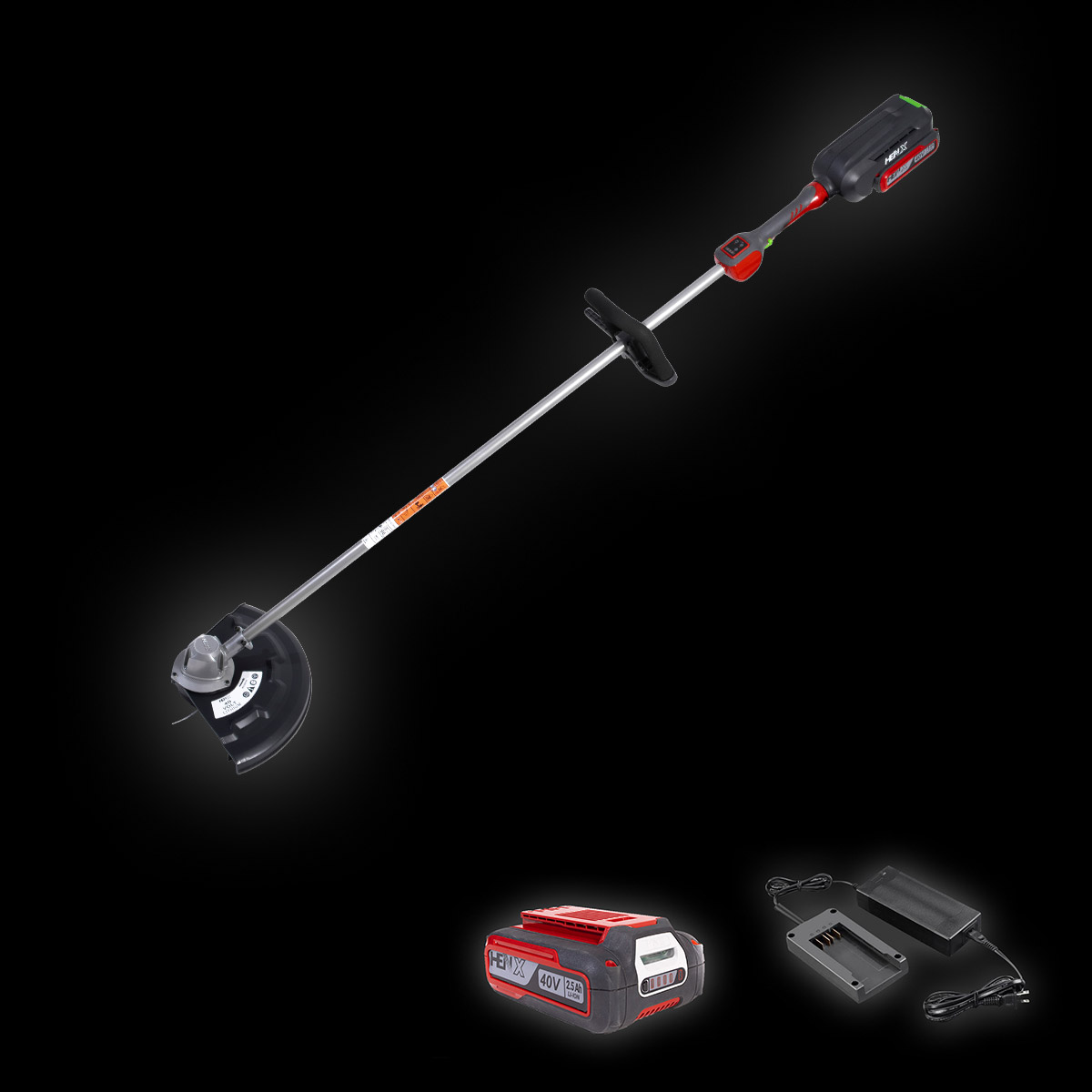 The HENX 40 Volt Li-Ion String Trimmer combines cordless convenience with exceptional working time. This trimmer features a high-efficiency brushless motor, a 350mm cutting swath, a bump-head string feed, and a professional 2.4mm nylon cutting line to get the job done fast and easy. The 40-Volt Lithium-ion battery delivers Gas-like Power and is compatible with all HENX 40V products and chargers.